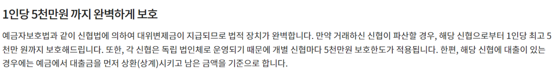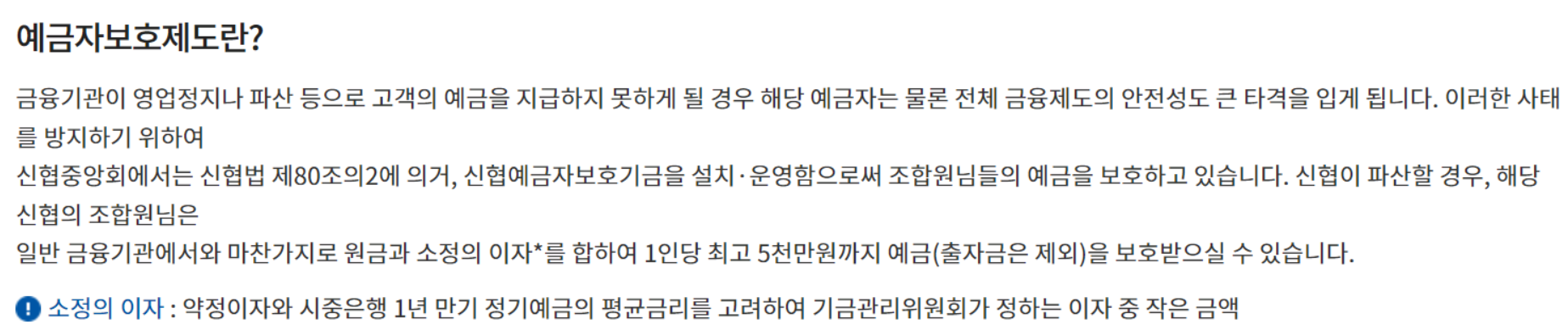 중요한 참고 사항은 배당금 지급을 목적으로하는 '출자금 통장'은 예금자 보호 대상이 아니라는 점을 꼭 알고 계셔야 합니다.