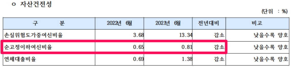 ※고정이하여신비율은 은행의 총 여신 중 회수하지 못한 고정이하의 여신이 차지하는 비율
