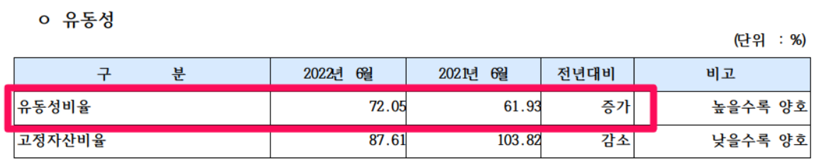 - 유동성비율 72.05%