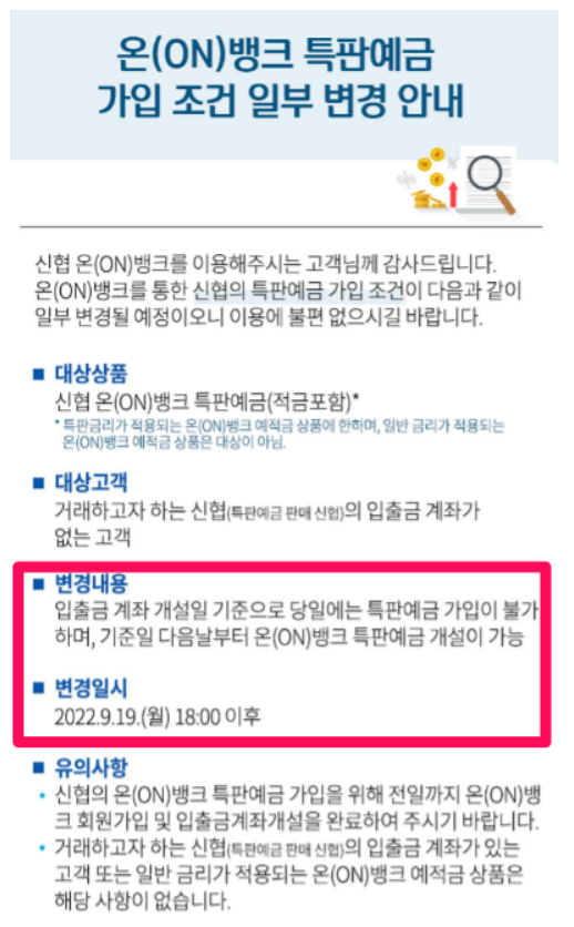 ※단, 특판예금 가입 후 입출금 통장을 해지하면 20영업일 제한이 풀린다고 합니다.