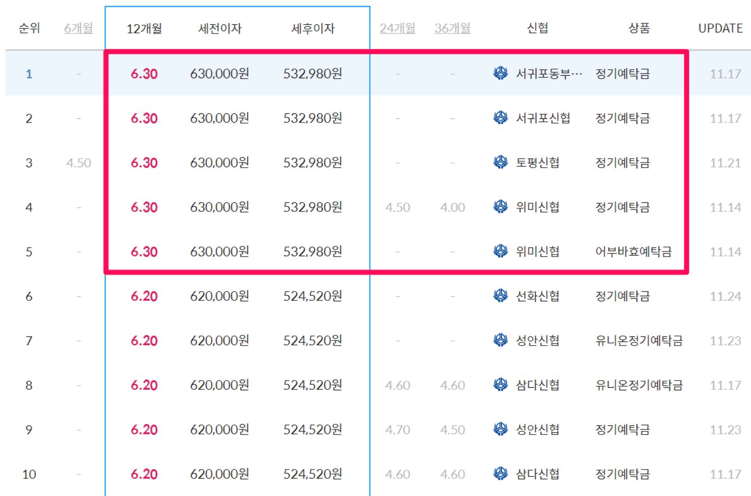 서귀포동부신협 6.3% (정기예탁금)