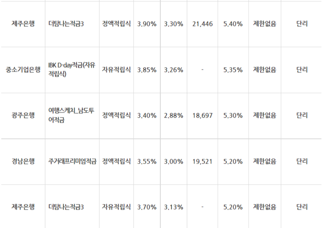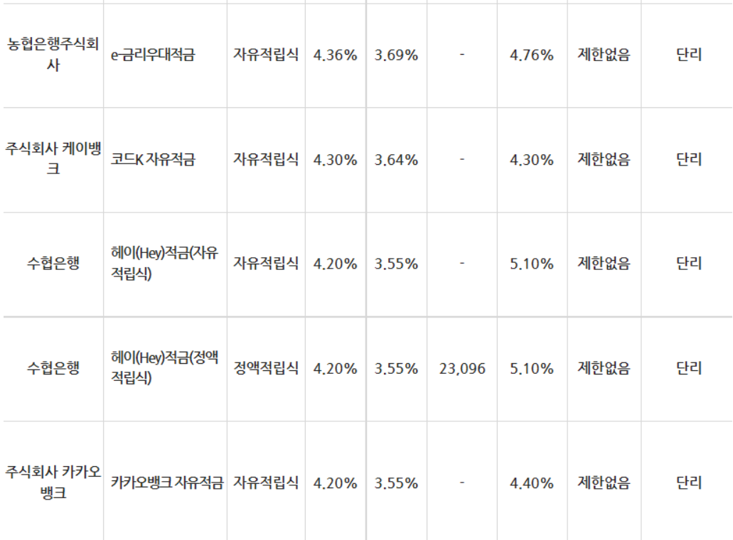 6) 동일한 기간이라면 정기적금 금리가 자유적립식 적금 금리보다 높습니다.
