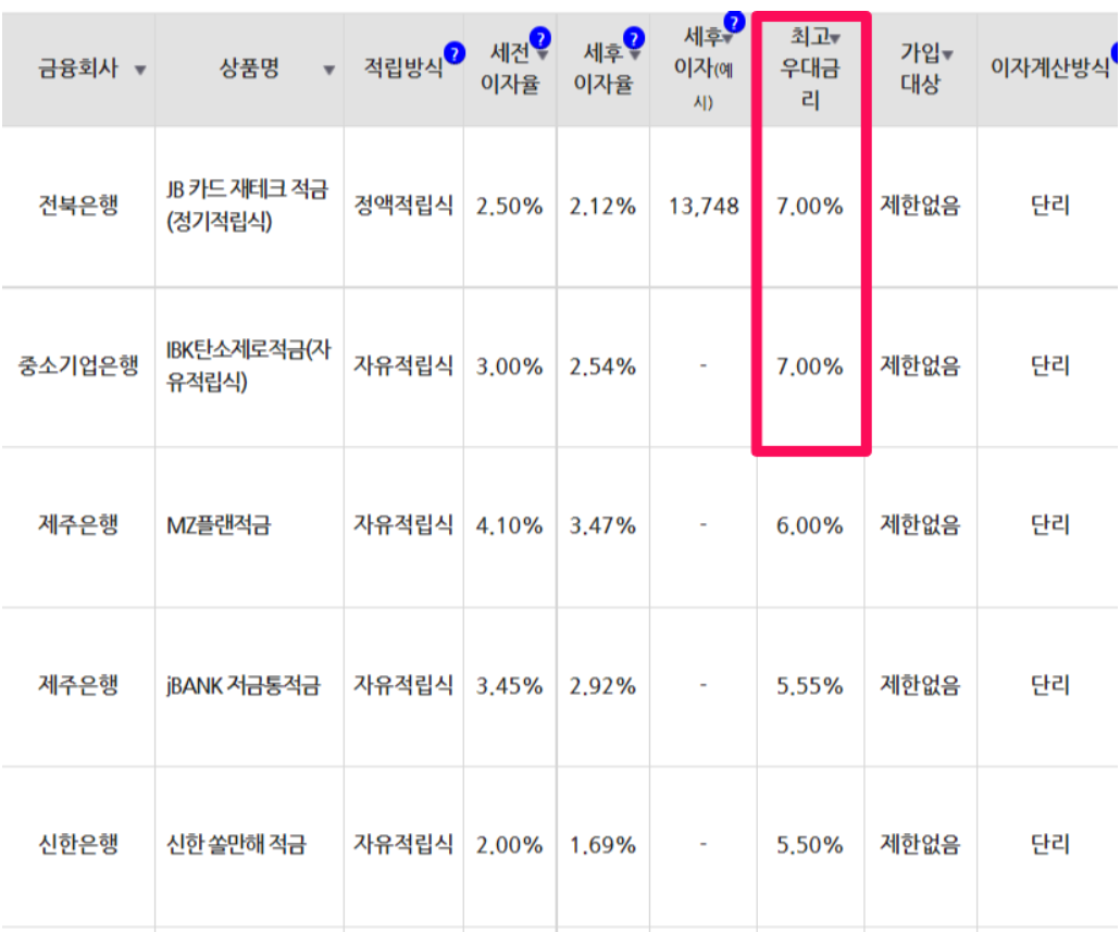 적금 이율 높은 시중 은행은 전북은행과 중소기업은행으로 7%금리를 보여줍니다. 적금의 상세한 조건을 알아보겠습니다.