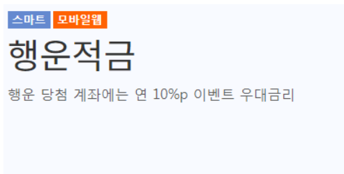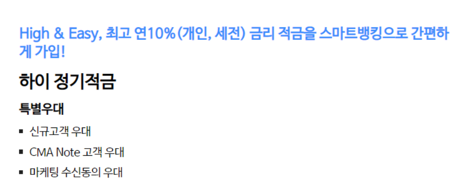 스마트뱅킹 비대면 전용 정기적금 상품으로 3가지 우대 요건만 충족하면 최대 10%의 적금 금리를 받습니다. 1인 1계좌 한정 상품으며 재가입이 불가능합니다. 7만좌가 판매되면 판매종료가 된다고 하네요. 월 불입액은 1만원 이상 10만원 이하로 소액 적금으로 적합한 상품입니다.
