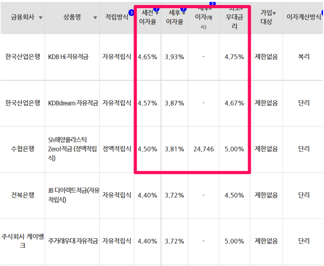 적금 이율 높은 은행을 기본 금리 기준으로 보면 한국산업은행과 수협은행이 높습니다.