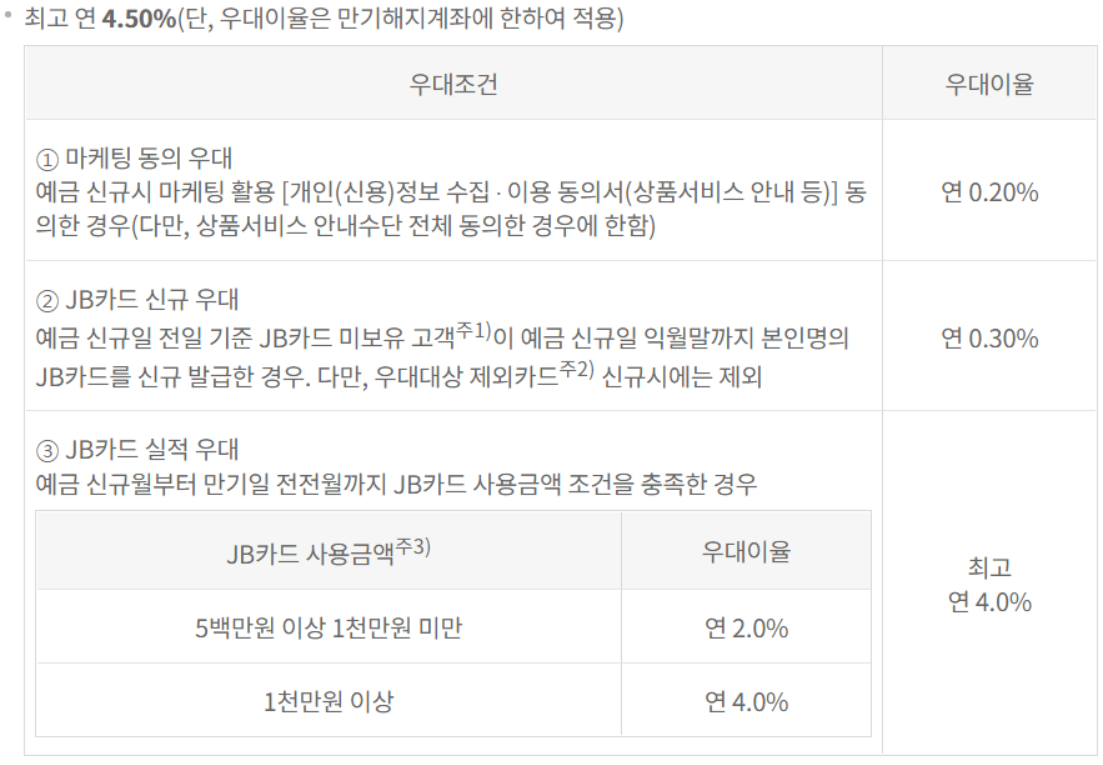 JB카드를 1천만원 이상 사용 시 4.0% 우대