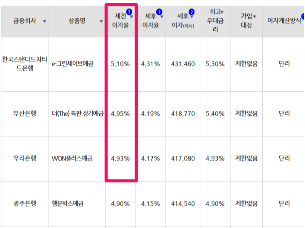 우대 금리가 높은 은행은 최고 정기 예금 금리가 높습니다. 우대 조건에 따라 유리한 상황이 될 수도 있으니 조건을 천천히 살펴보시는 것이 중요합니다.