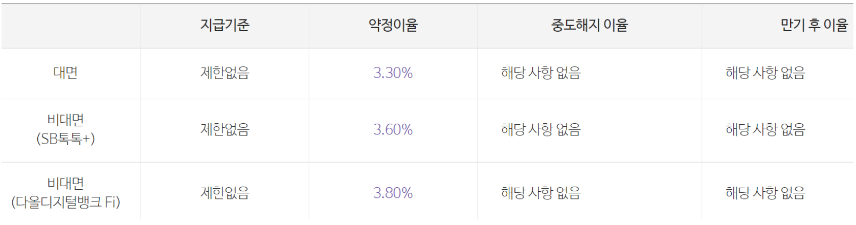 2)비대면(SB톡톡+) 가입 시, 3.6%