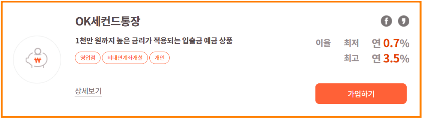 시중은행(저축은행 제외)/증권사 앱(APP)에서 제공하는 오픈뱅킹에 OK세컨드통장 등록 익일로부터 0.5% 우대