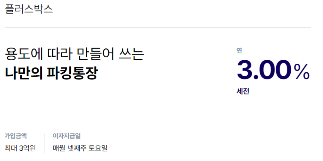 ※ 파킹통장은 이자 지급이 은행 별로 상이하기 때문에 이자 지급일이 거래하시는데 중요 요소라면 은행별로 이자 지급일을 확인해 보시길 추천드립니다.