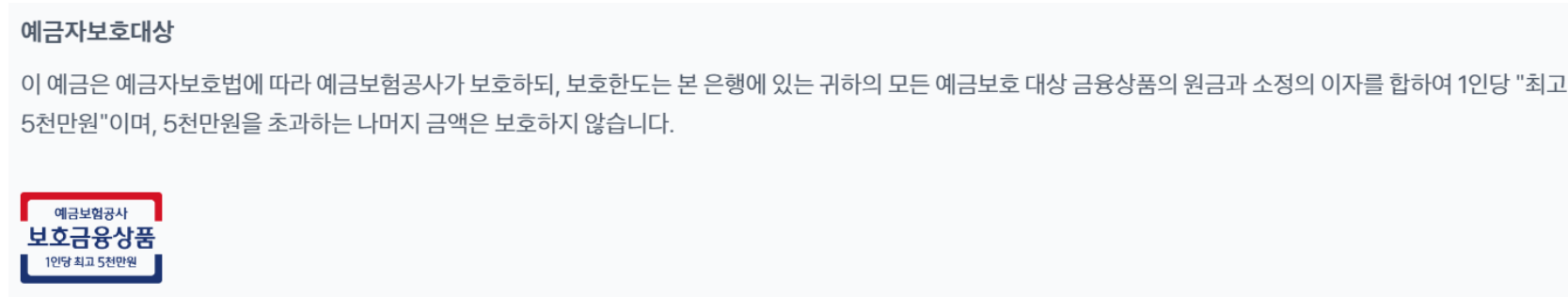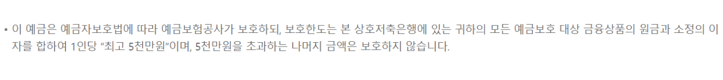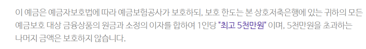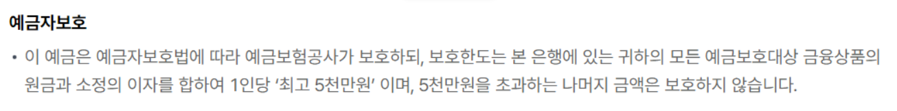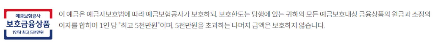 ※예금자 보호는 원금과 이자를 합쳐서 5천만원까지 입니다.