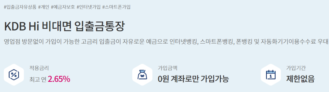 2) 최고 2.65% KDB산업은행 KDB Hi 비대면 입출금통장