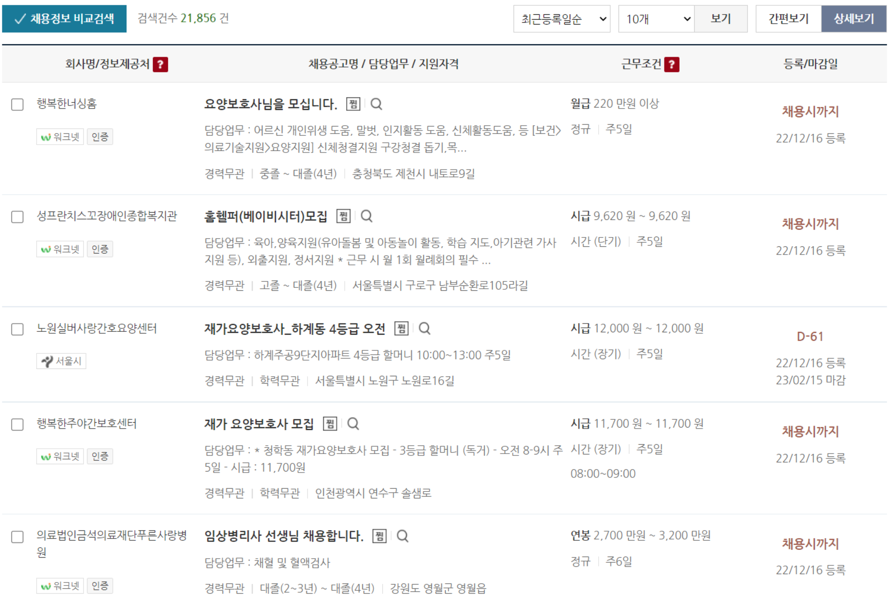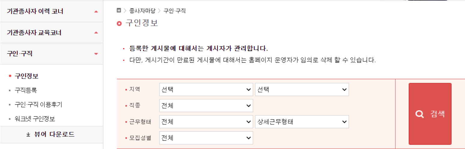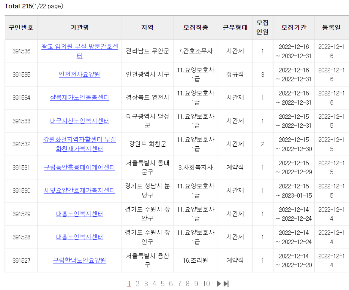 ▶워그넷 요양보호사 채용정보 조회 페이지