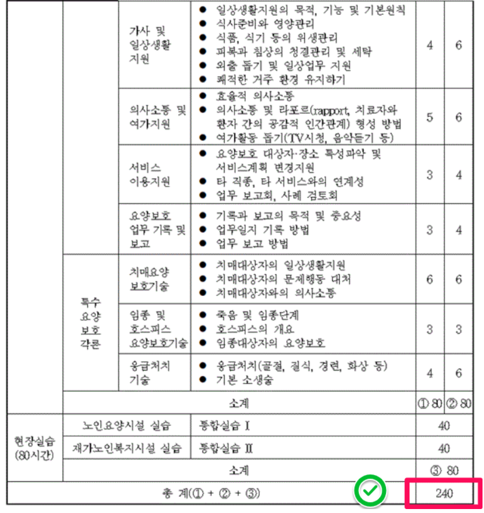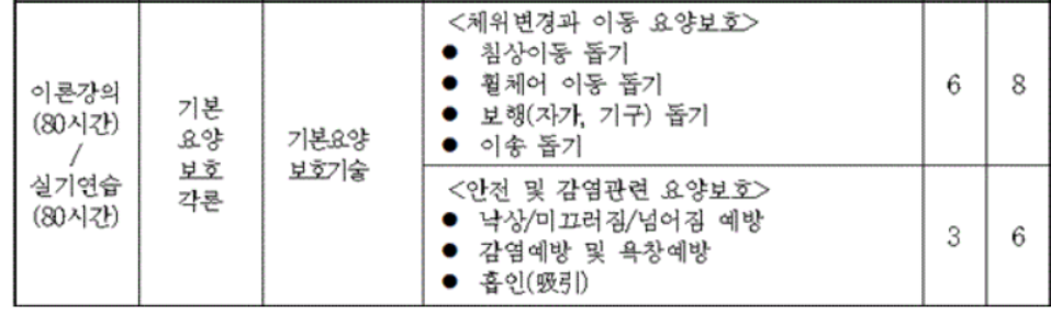 ※국가자격(면허)소지자(간호사, 간호조무사, 물리치료사, 사회복지사, 작업치료사)는 40 ~ 50시간