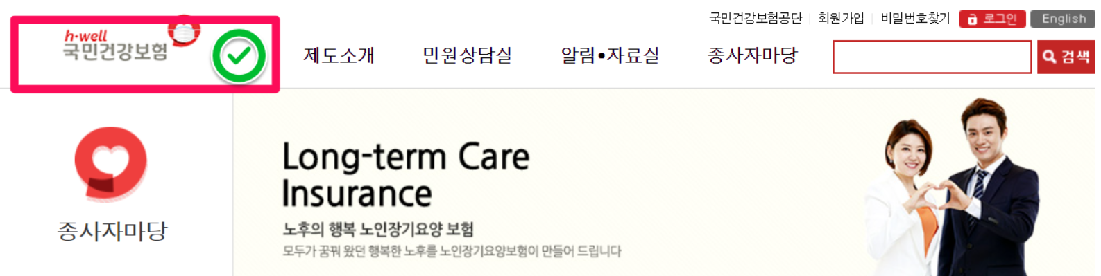 ▶국민건강보험공단 노인장기요양보험 종사자 구인정보 안내 페이지