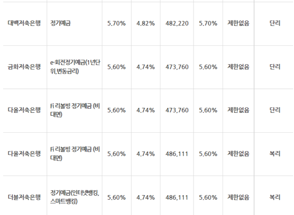 4. 5.60% 다올저축은행 Fi 리볼빙 정기예금(비대면), 정기예금(인터넷뱅킹, 스마트뱅킹)