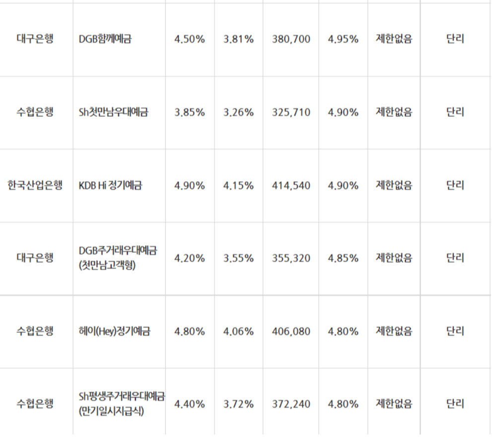 ※ 세전이자율 : 기본 금리만 적용하고우대금리는 반영하지 않음