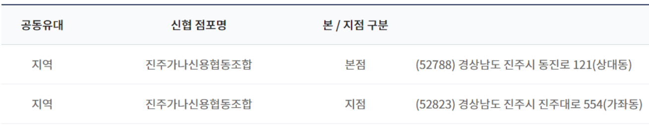 바로 신협의 본점과 지점 정보를 빼놓은 것입니다.