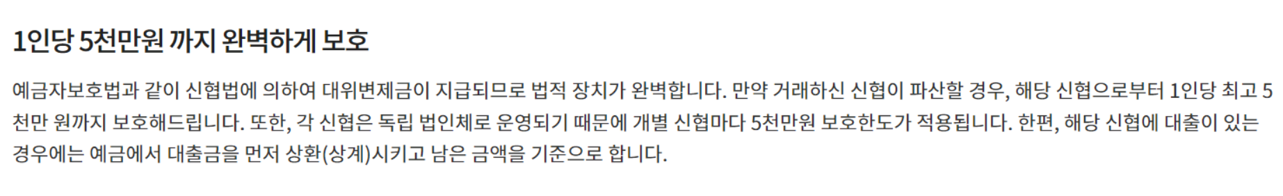 또 한 가지 중요한 것은 배당금 지급을 목적으로하는 '출자금 통장'은 예금자 보호 대상 상품이 아닙니다.