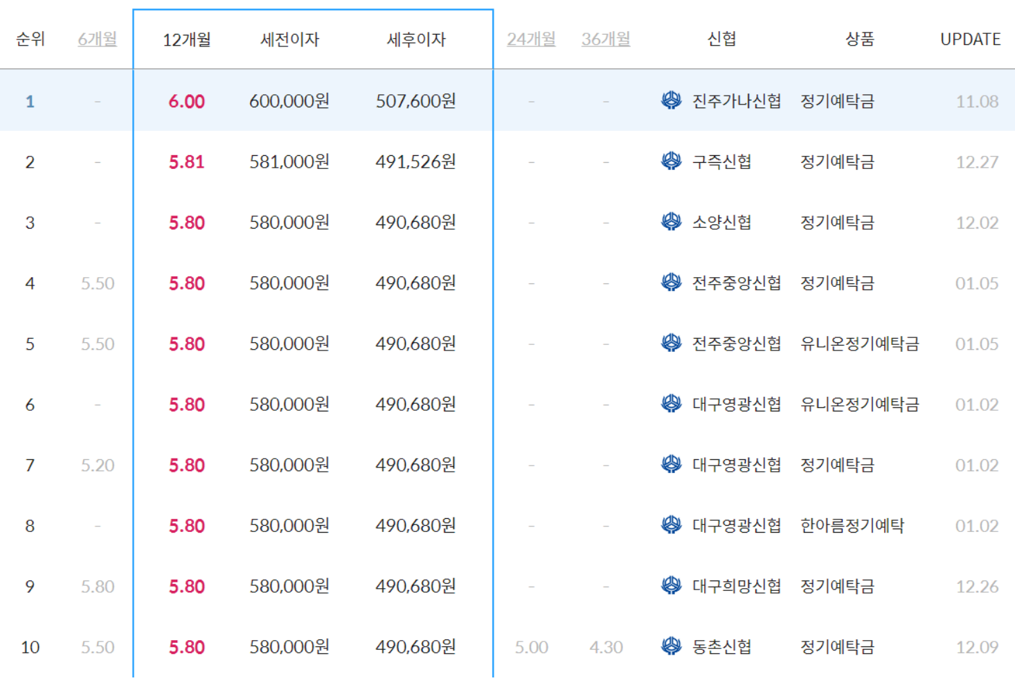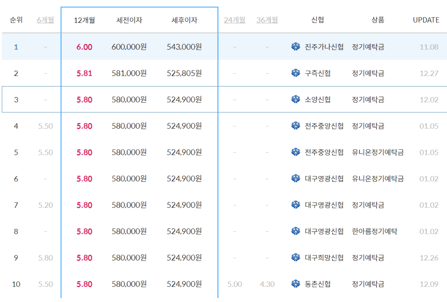 신협 정기예금 금리 1월 비교 TOP10을 알아보도록 하겠습니다.
