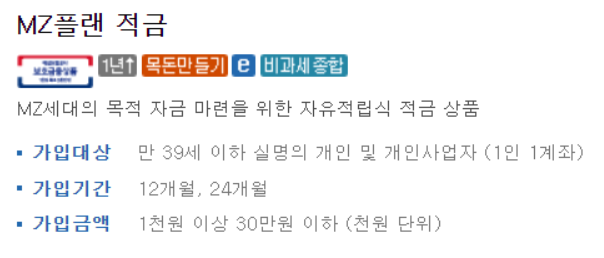 상품명 : MZ플랜적금