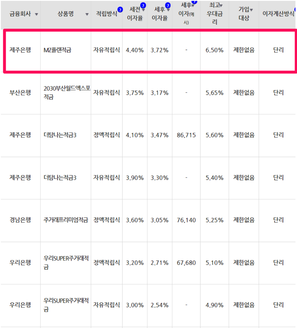 24개월 만기 적금 금리 높은 곳은 연 6.5%의 제주은행입니다.