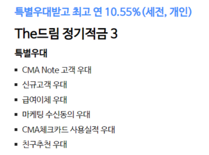 3)10.55% 우리종합금융 The드림 정기적금 3 (6개월)