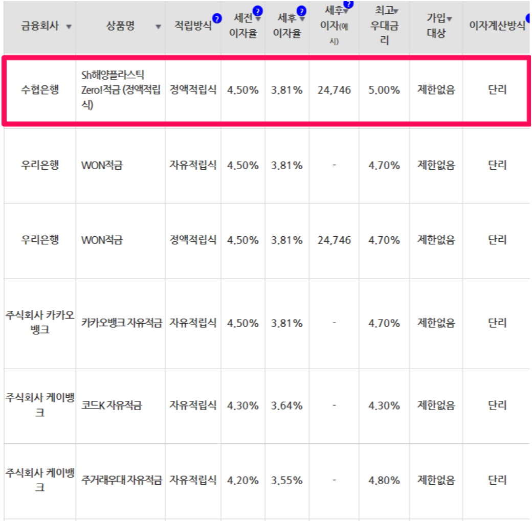 12개월 만기 적금 금리 높은 곳은 연 5%의 수협은행입니다.