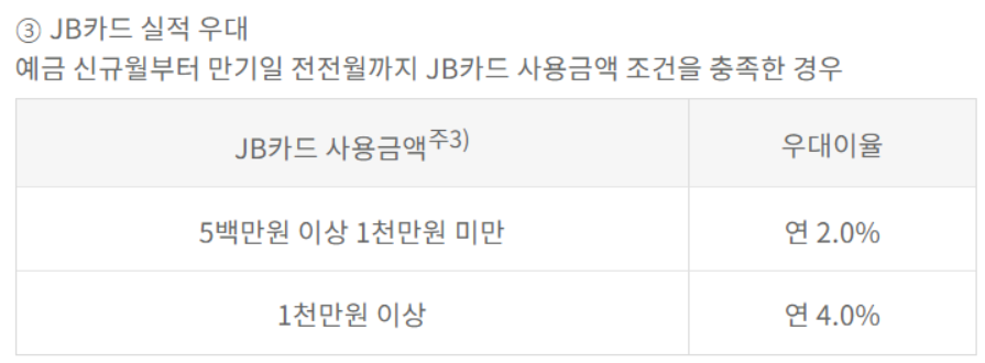 3)JB카드 실적 최대 연 4.0% 우대