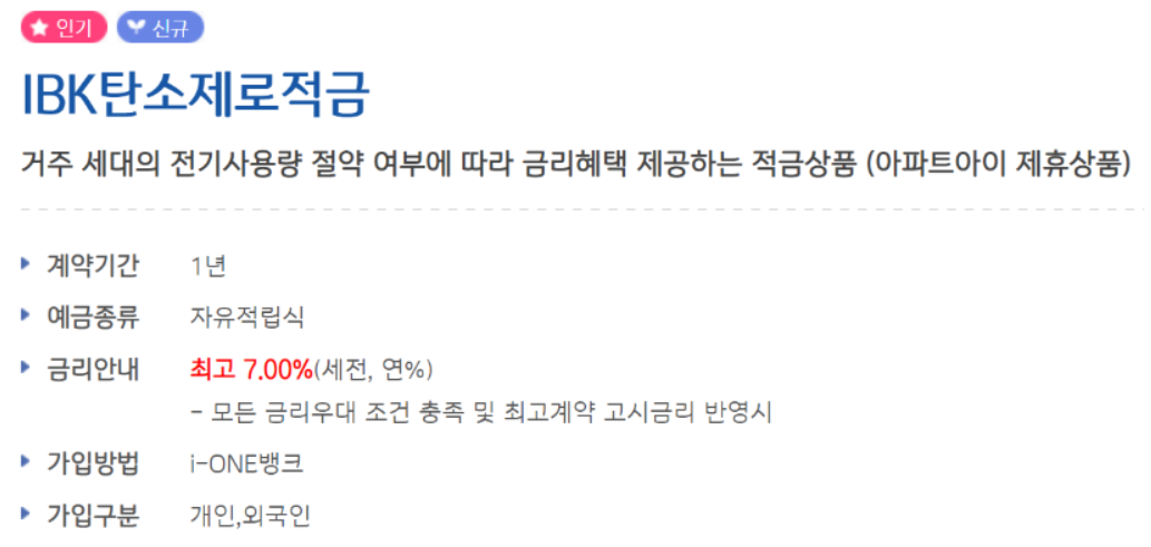 상품명 : IBK탄소제로적금(자유적립식)