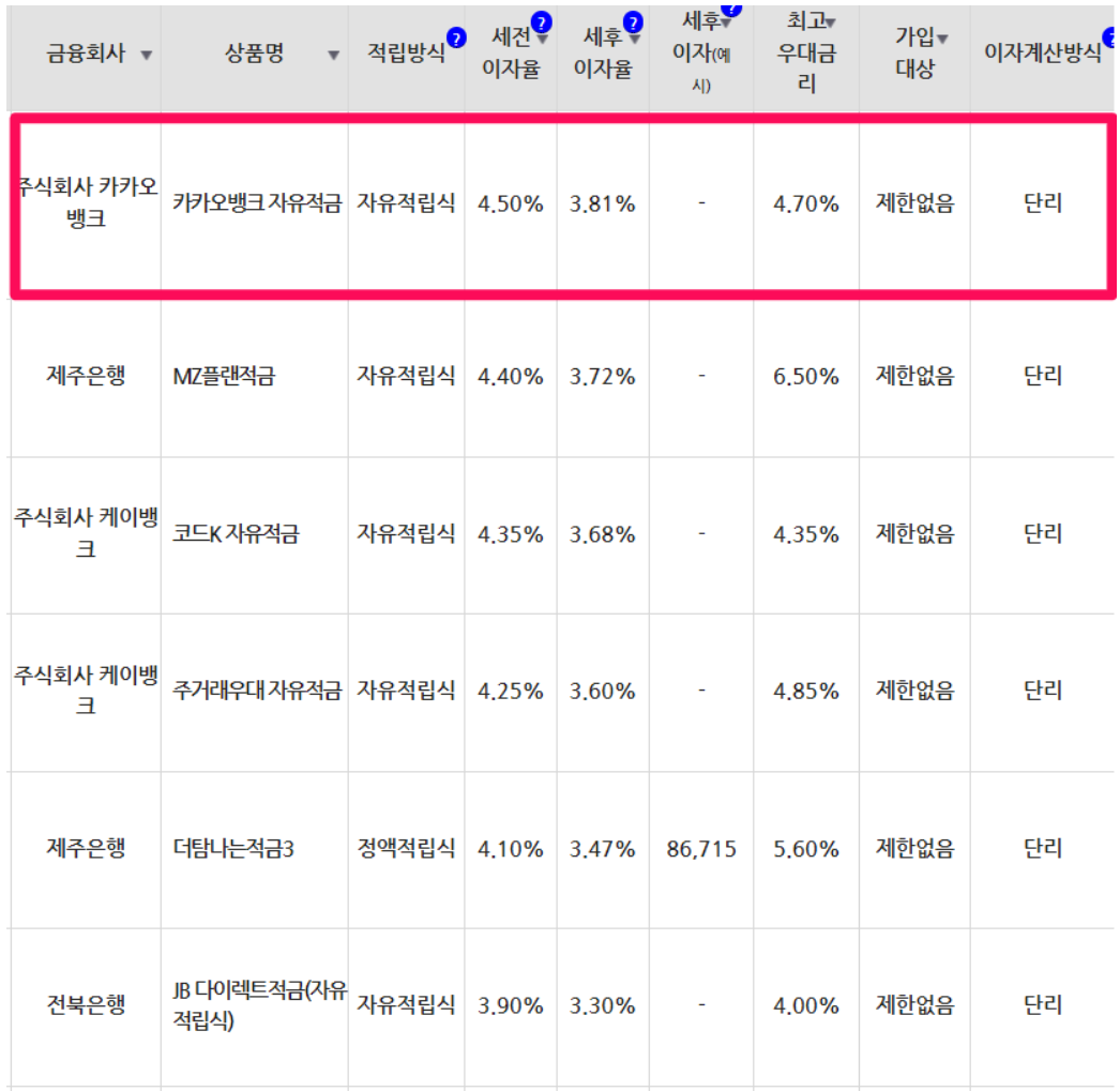 24개월 만기 적금 금리 높은 곳은 연 4.7%의 카카오뱅크입니다.