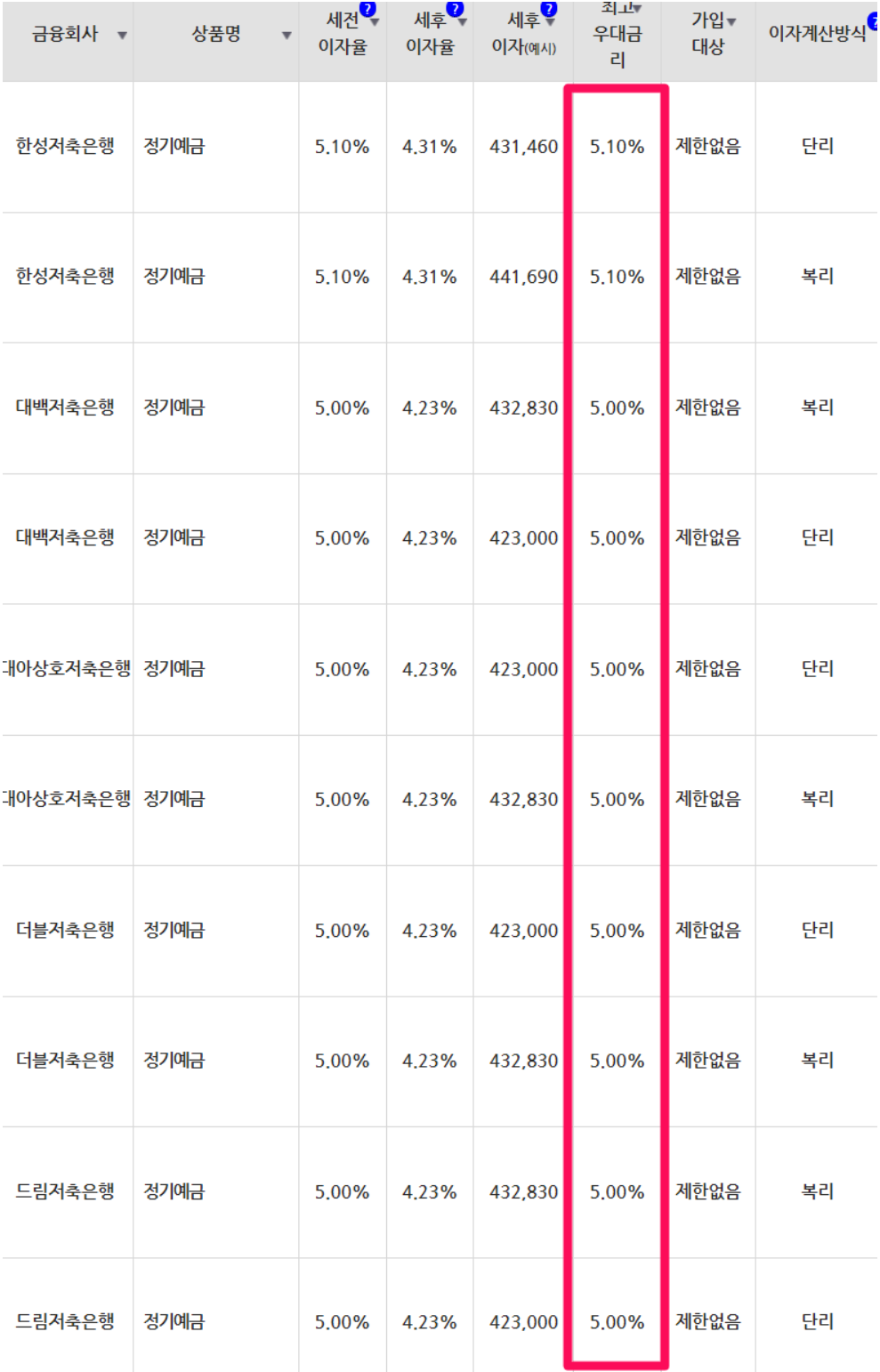 우대 예금 금리 가장 높은 곳