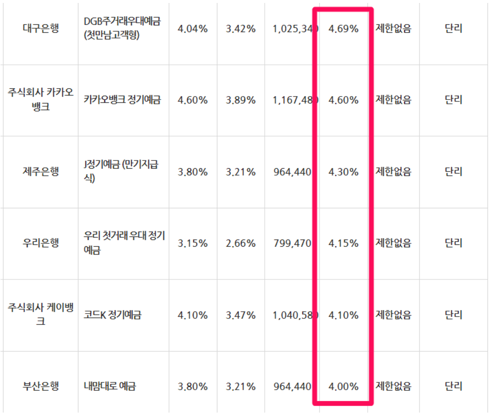 1. 4.69% 대구은행 DGB주거래우대예금(첫만남고객형)