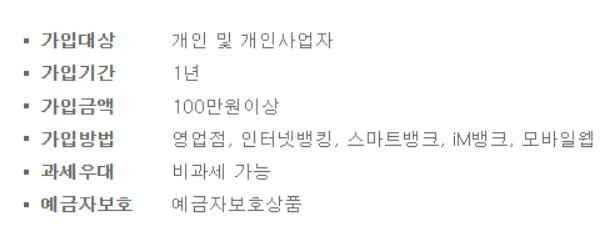 - 가입 방법 : 영업점, 인터넷 뱅킹, 스마트폰 뱅킹