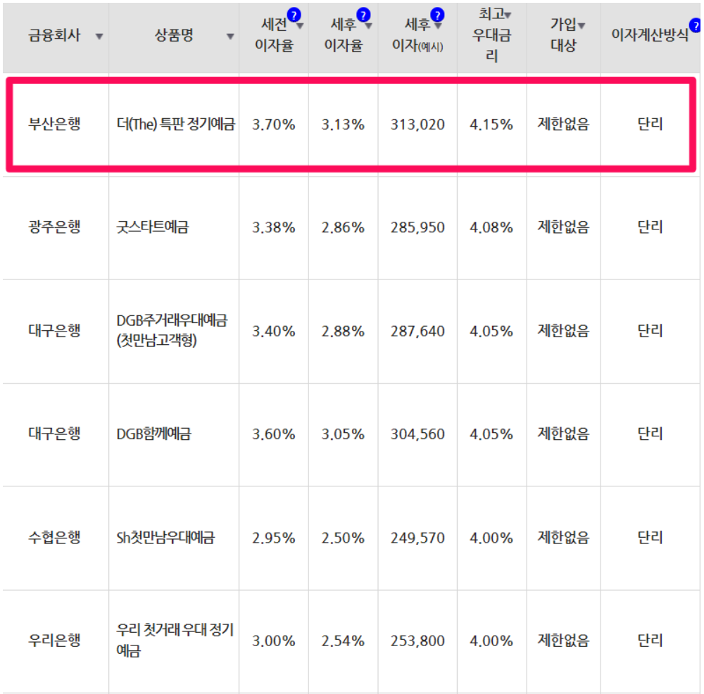 1. 4.15% 부산은행 더(The)특판 정기예금